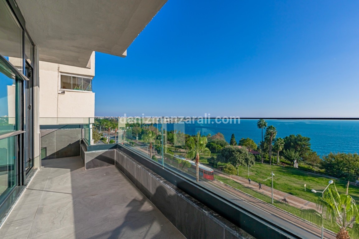 Architect-made 5 + 1 apartment for sale suitable for citizenship, ultra-luxury furnished on the Konyaaltı street beach, with en-suite bathroom in every room